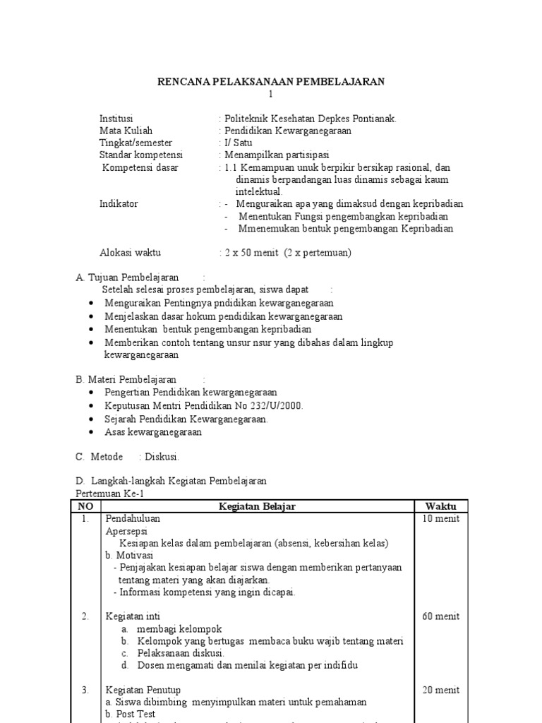 Rencana Pelaksanaan Pembelajaran Rpp Satuan