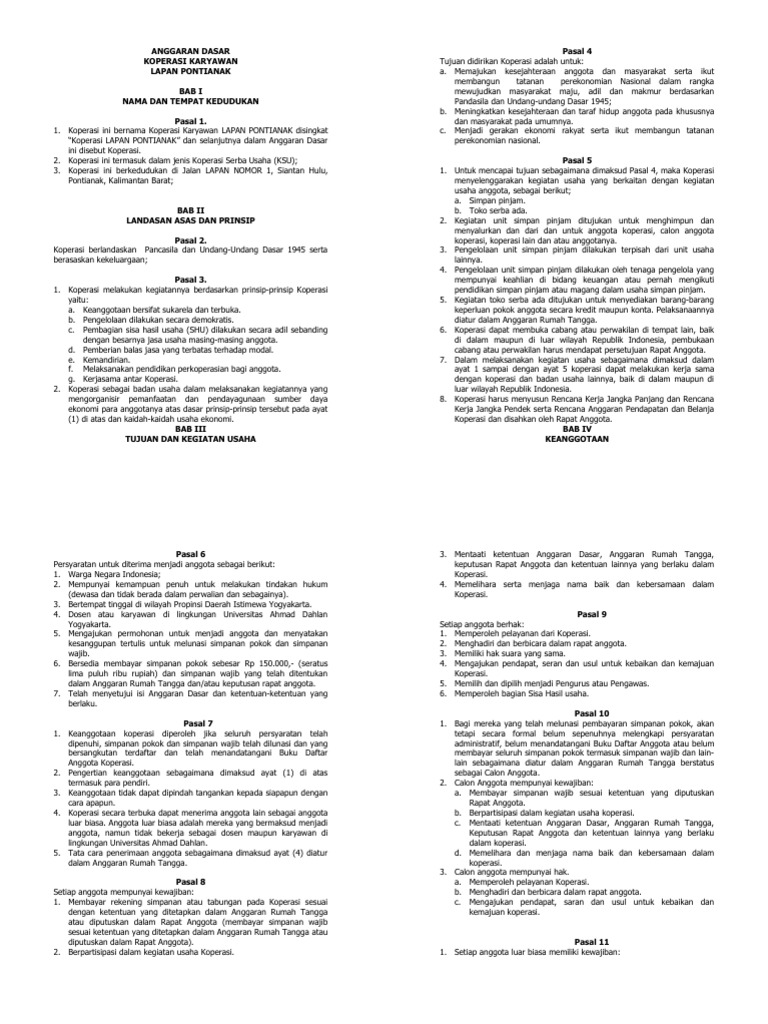 Contoh Ad Art Koperasi Serba Usaha Lengkap Pdf Bagikan Contoh
