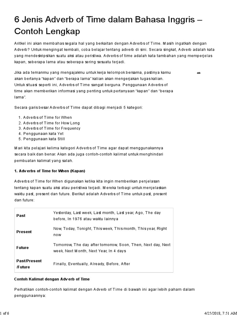 6 Jenis Adverb Of Time Dalam Bahasa Inggris Contoh Lengkap