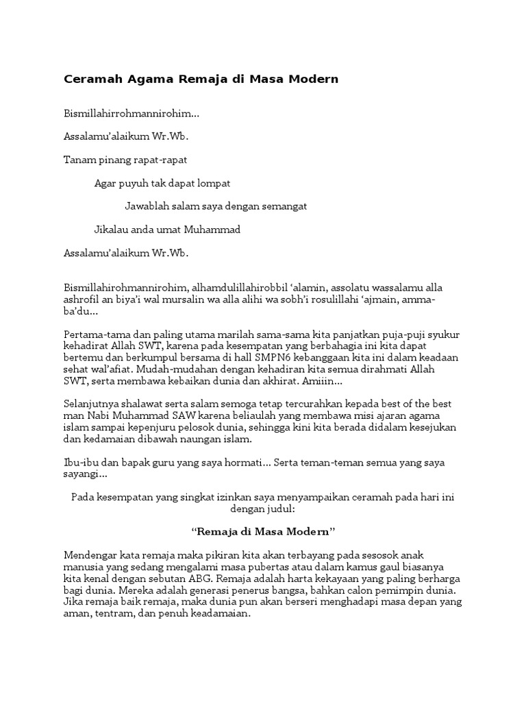 Ceramah Agama Remaja Di Masa Modern