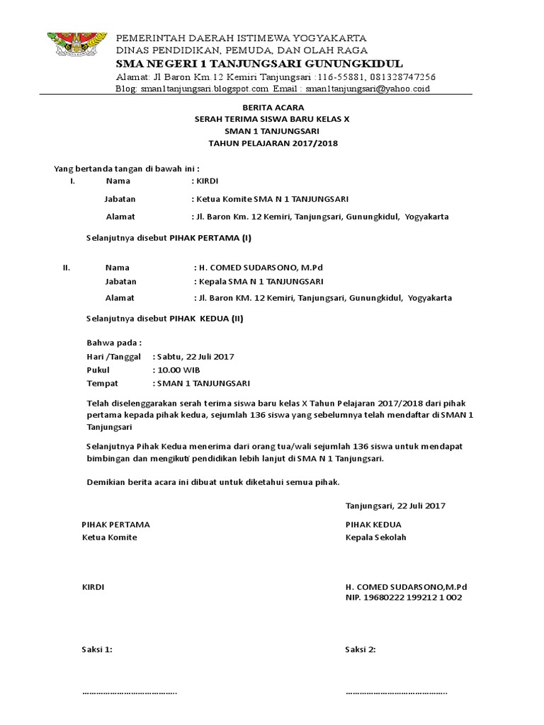 Contoh Berita Acara Serah Terima Barang Doc Kumpulan Soal