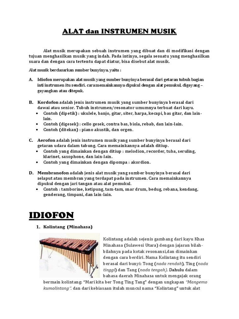Pengertian alat musik idiophone beserta contohnya salah satu jenis alat musik yang sudah di bedakan berdasarkan sumber suaranya adalah jenis alat musik idiophonekali ini kita akan membahas mengenai pengertian alat musik idiophone beserta contohnya. Pada bagian sudut alat musik triangle segitiga terdapat sebuah lubang atau dalam bentuk lainnya dimana seutas tali konon dahulu kala tali ini terbuat dari usus binatang tapi dalam perkembangannya sudah dalam bentuk yang lainnya misalnya. Karena banyaknya keragaman tersebut anda akan dengan mudah menemukan rumah adat yang berbeda tari tarian yang beragam bahasa yang beragam hingga alat musik yang beragam.